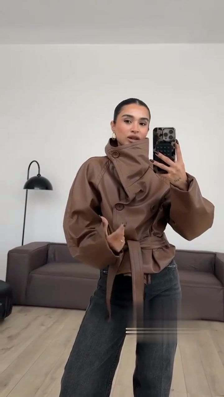 طقم نسائي محبوك بأكمام طويلة وياقة